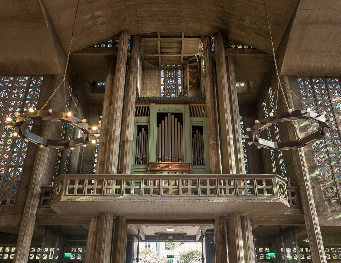 Église Notre-Dame du Raincy (1922-1923, Le Raincy, Seine-Saint-Denis), conçue par Auguste Perret, orgue de John Abbey. Classée Monument Historique en 1966.